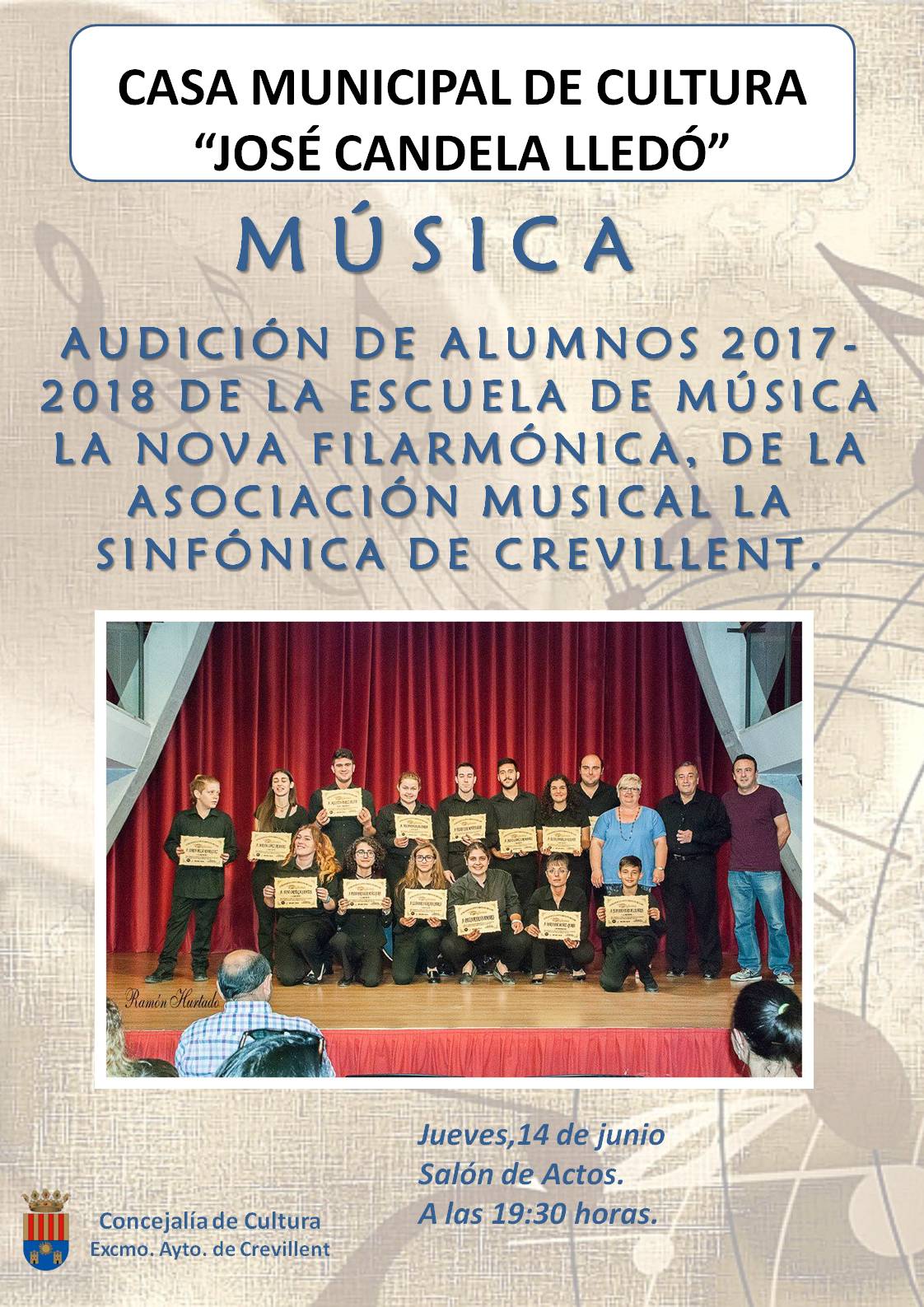 AUDICIÓ D’ALUMNES 2017-2018 DE L’ESCOLA DE MÚSICA LA NOVA FILHARMÒNICA, DE L’ASSOCIACIÓ MUSICAL LA SIMFÒNICA DE CREVILLENT.