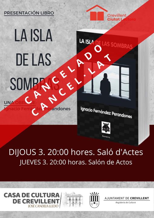 ES CANCEL·LA L’ACTE DE PRESENTACIÓ DEL LLIBRE LA ISLA DE LAS SOMBRAS D’ESTE DIJOUS 3 A LES 20:00