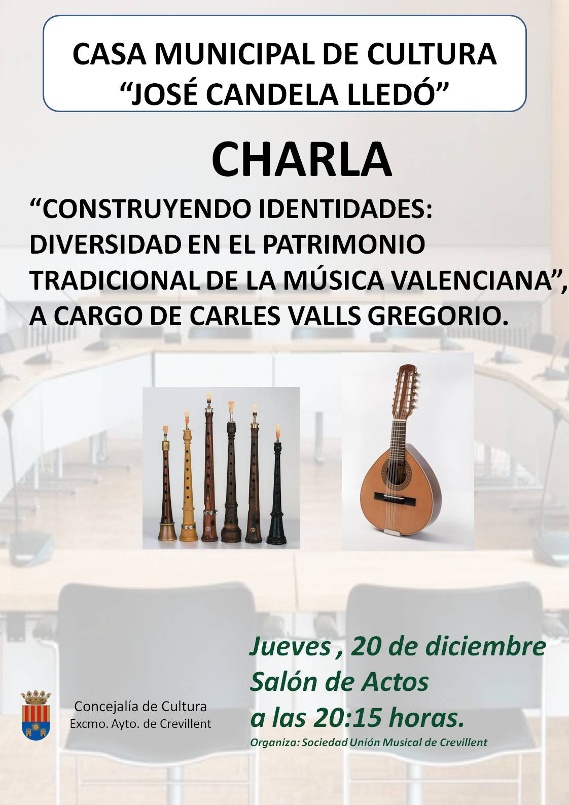 CHARLA “CONSTRUYENDO IDENTIDADES: DIVERSIDAD EN EL PATRIMONIO TRADICIONAL DE LA MÚSICA VALENCIANA”, A CARGO DE CARLES VALLS GREGORIO.