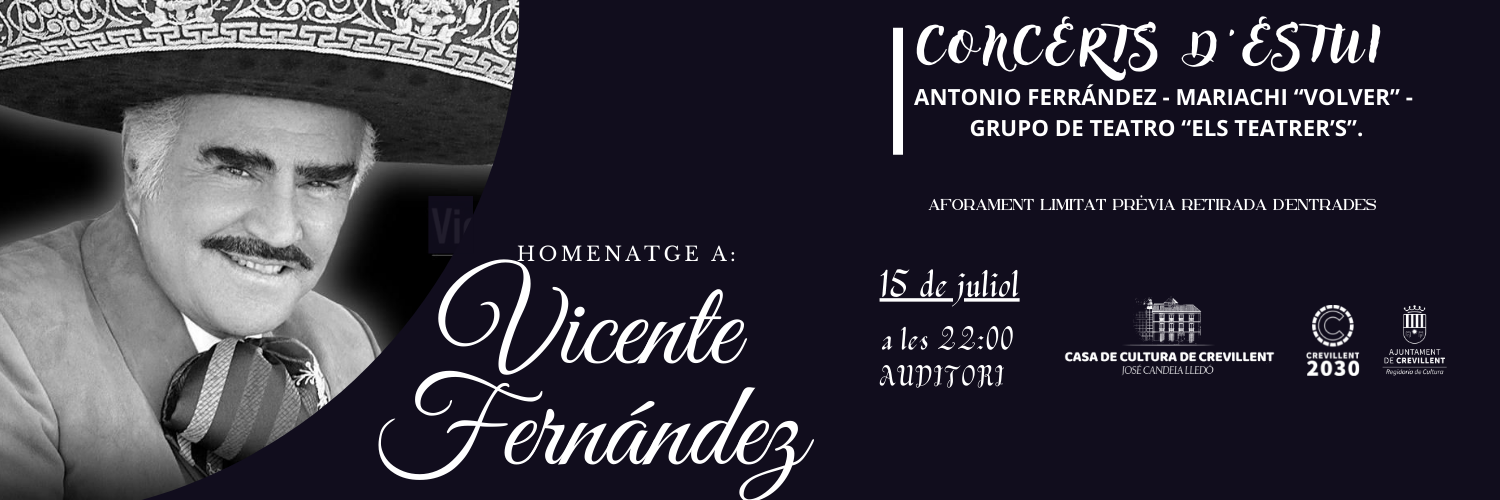 CONCERTS D’ESTIU: CONCIERTO HOMENAJE A “VICENTE FERNÁNDEZ” A CARGO DE ANTONIO FERRÁNDEZ ACOMPAÑADO POR EL MARIACHI “VOLVER” Y CON LA COLABORACIÓN DEL GRUPO DE TEATRO “ELS TEATRER’S”.
