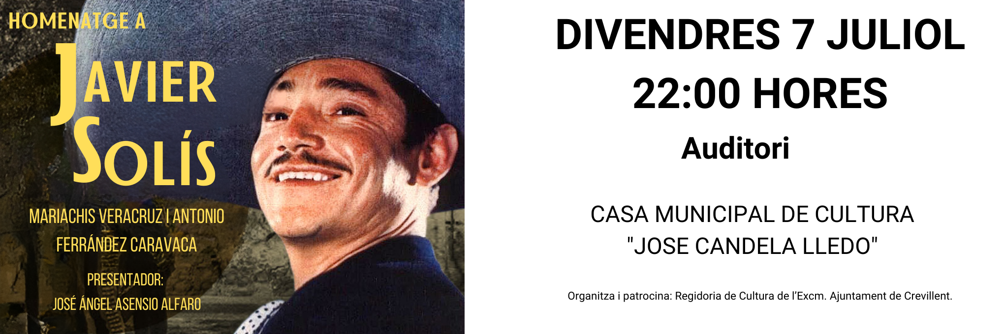 CONCERTS D’ESTIU: “HOMENAJE A JAVIER SOLÍS EL REY DEL BOLERO RANCHERO”, POR EL GRUPO MARIACHIS VERACRUZ Y ANTONIO FERRÁNDEZ CARAVACA.