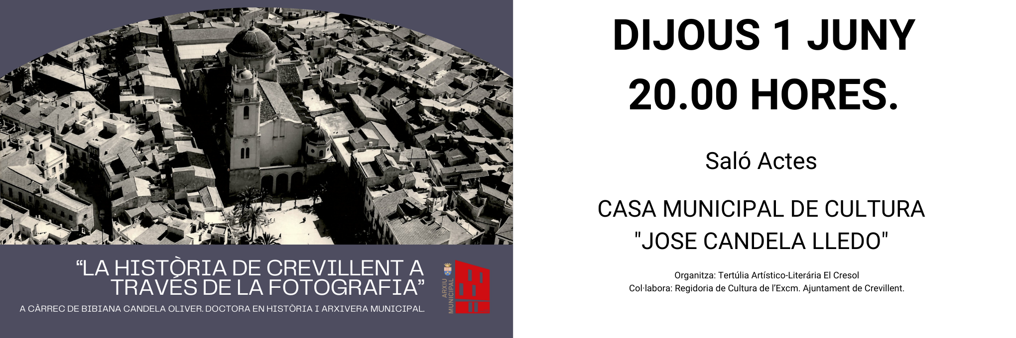 CONFERENCIA “LA HISTORIA DE CREVILLENT A TRAVÉS DE LA FOTOGRAFÍA”, A CARGO BIBIANA CANDELA OLIVER , DOCTORA EN HISTORIA Y ARCHIVERA MUNICIPAL.