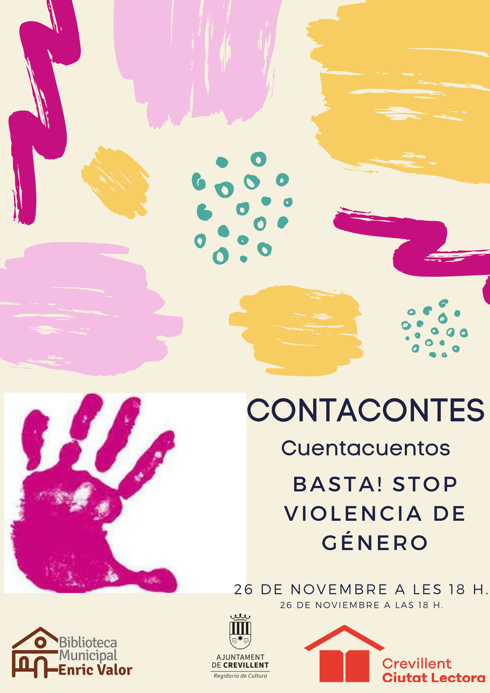 CONTACONTES “STOP VIOLÈNCIA DE GÈNERE”, AMB MOTIU EL DIA INTERNACIONAL D’ERADICACIÓ DE LA VIOLÈNCIA CONTRA LA DONA, CÀRREC DE REBOMBORI CULTURAL.