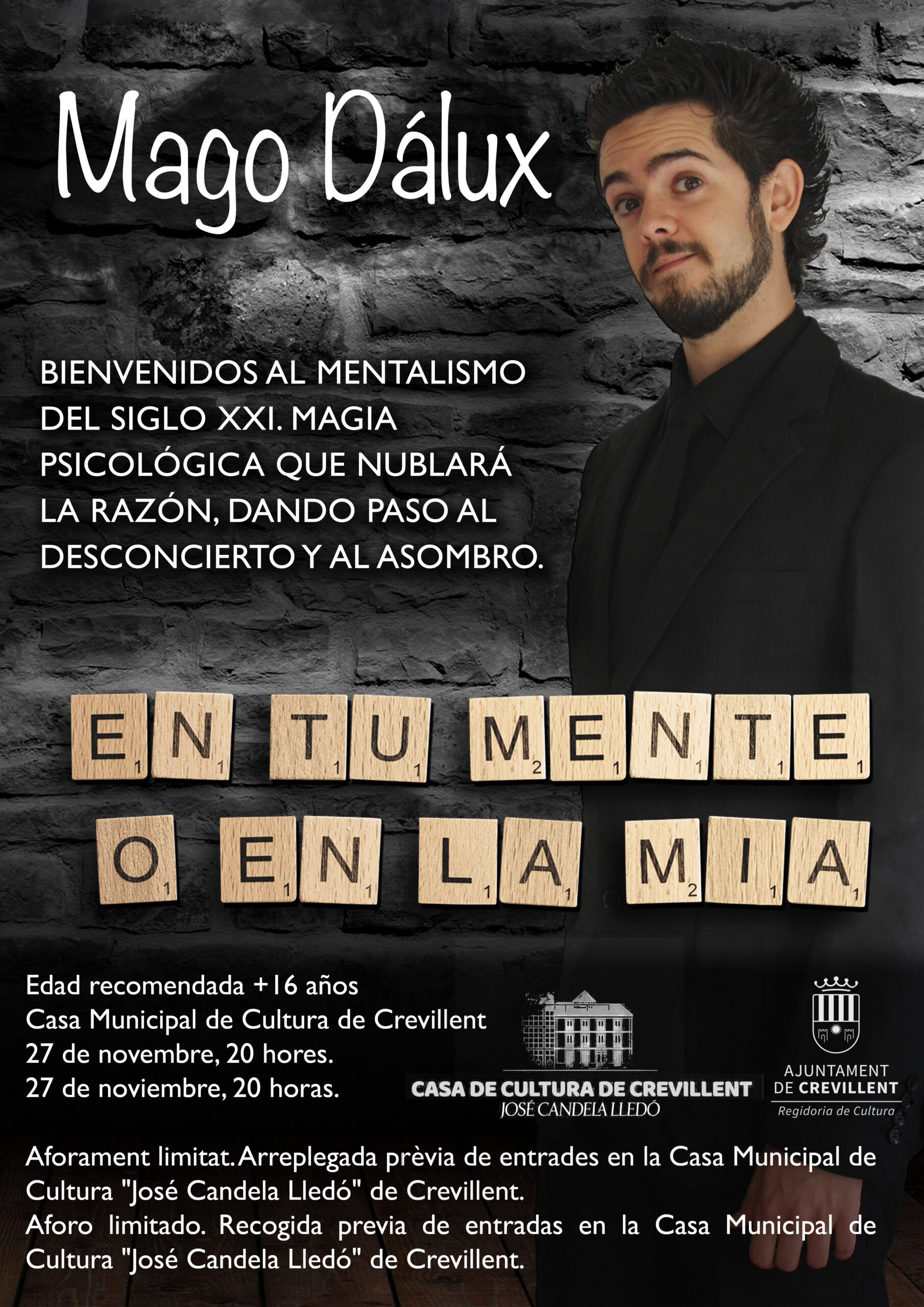 ESPECTÁCULO DE MENTALISMO “EN TU MENTE O EN LA MÍA”, A CARGO DEL MAGO DÁLUX.