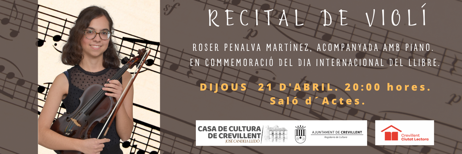 RECITAL DE VIOLÍ A CÀRREC DE ROSER PENALVA MARTÍNEZ, ACOMPANYADA AMB PIANO. EN COMMEMORACIÓ DEL DIA INTERNACIONAL DEL LLIBRE.