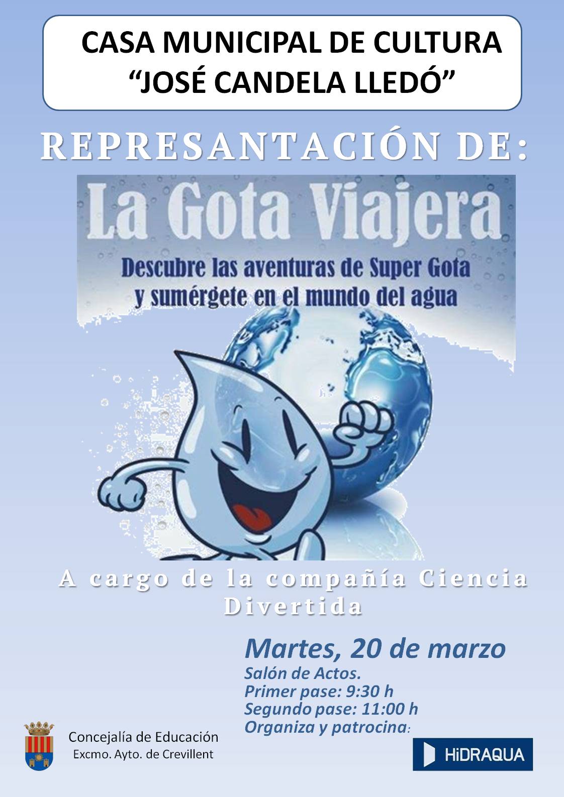 REPRESENTACIÓN DE: “LA GOTA VIAJERA”, A CARGO DE LA COMPAÑÍA CIENCIA DIVERTIDA