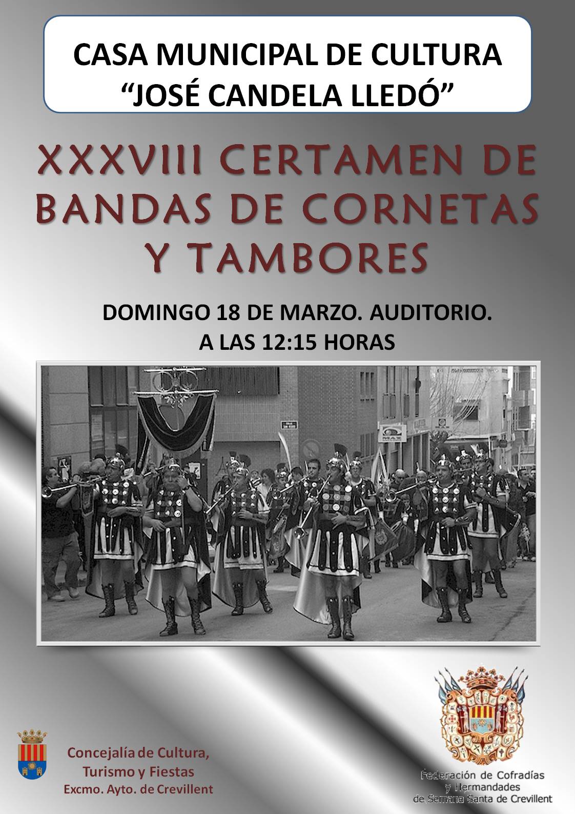 Patrocinan: Concejalías de Cultura, Turismo y Fiestas del Excmo. Ayto. de Crevillent.
