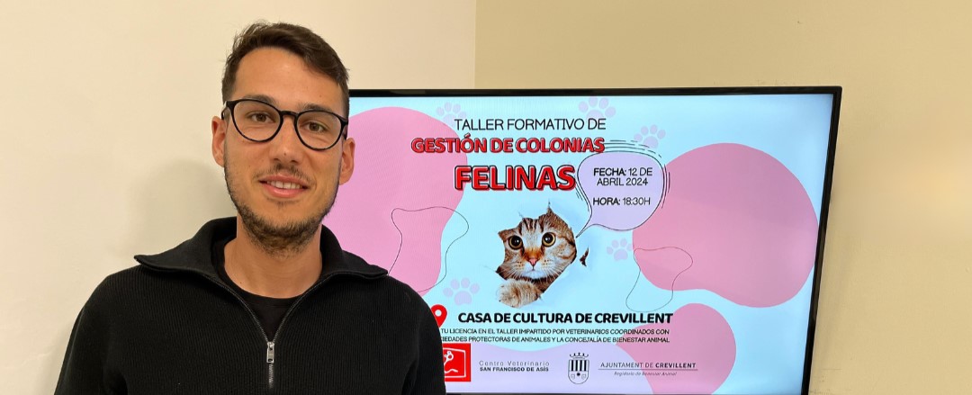 Crevillent (09/04/2024).- El concejal de Bienestar Animal, David Amorós Candela, ha anunciado un taller formativo sobre gestión de colonias felinas que se impartirá este viernes 12 de abril a partir de las 18:30 horas en el Salón de Actos de la Casa de Cultura “José Candela Lledó”. “El objetivo es el de que la población entienda la ubicación y las personas que pueden alimentar a gatos callejeros ya que un descontrol puede generar diferentes problemáticas”, ha incidido el edil.