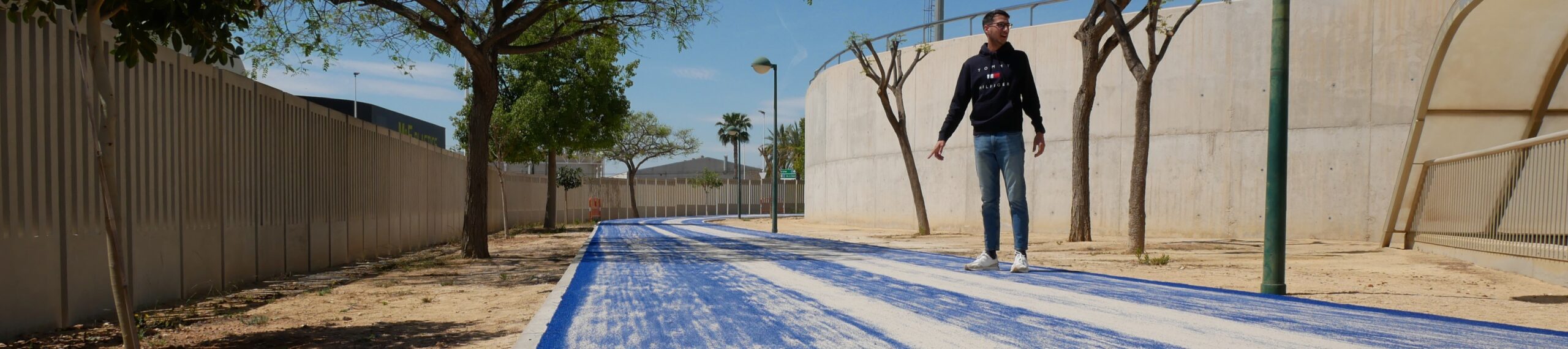 • El regidor d’Esports, David Amorós Candela, ha detallat que «s’estan recobrint amb gespa artifical els 500 metros de longitud del circuit, després d’instal·lar un paviment més suau que el formigó que existia prèviament amb la finalitat de reduir l’impacte i generar un circuit més atractiu i menys lesiu per als esportistes»