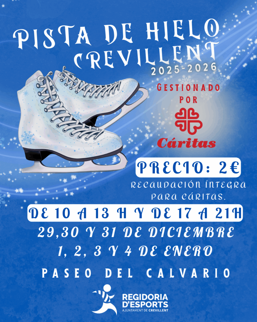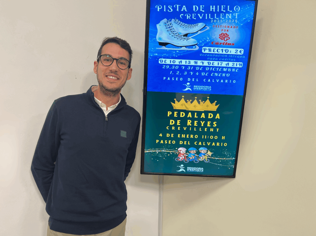 Crevillent (17/12/2025).- El concejal de Deportes, David Amorós Candela, ha anunciado este miércoles la puesta en marcha de una actividad lúdico-deportiva basada en una pista de hielo que se instalará en el Paseo del Calvario con motivo de las fiestas navideñas. Esta iniciativa se desarrollará del 29 de diciembre al 4 de enero, en horario de 10:00 a 13:00 horas y de 17:00 a 21:00 horas, con el objetivo de ofrecer una alternativa de ocio saludable para niños, jóvenes y familias durante estos días.