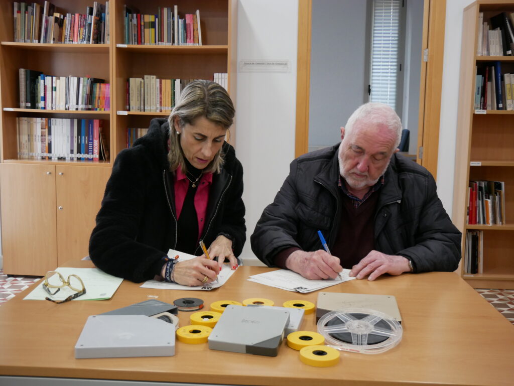 Crevillent (03/03/2026).- Este martes ha tenido lugar la firma del convenio de donación de Antonio Guilabert Roca, en representación también de su hermana María Teresa Guilabert Roca, al Archivo Municipal, de películas pertenecientes a su padre Antonio Guilabert Aznar, crevillentino gran aficionado a la fotografía con la que obtuvo numerosos premios en concursos locales, así como amante de las tradiciones locales, de hecho fue uno de los fundadores de la Festa y de la comparsa Beduinos.