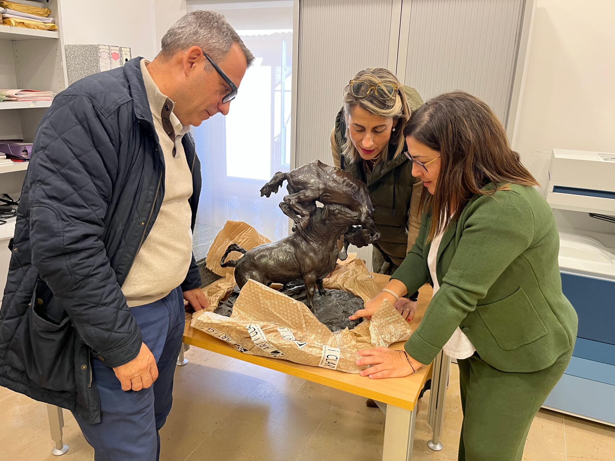 Crevillent (24/11/2025).- El Ayuntamiento ha adquirido la escultura “Las dos víctimas de la Fiesta” del escultor Mariano Benlliure. Dicha pieza ha sido enviada por la empresa de transportes Art i Clar, siendo adquirida la obra a través del Grupo Ansorena, casa de subastas situada en Madrid, que garantiza la autenticidad y el valor histórico de la obra.