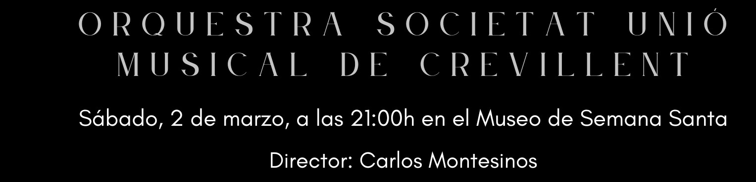 Per part seua, la recentment estrenada Orquestra de la Societat Unió Musical, de la mà del seu director Carlos Montesinos, interpretarà diverses peces sacres de compositors com Vivaldi, Richard Wagner o Txaikovski. “Poder participar en un concert com aquest, celebrat en un entorn tan especial, és tot un privilegi. La Setmana Santa és una de les tradicions més importants del nostre poble, per la qual cosa formar part d’ella en accions com aquesta, que inclouen a més un toc solidari, sempre serà motiu d’orgull per a tota la Societat Unió Musical”, destaca Luis Sempere, president de la SUM.