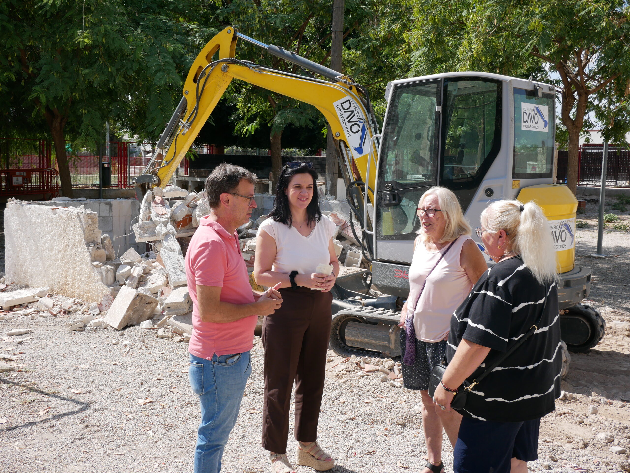 Crevillent (15/09/2025).- La concejala de Participación Ciudadana, Silvia Asencio Mas, y el edil de Atención Vecinal, Pedanías y Barrios, Francisco Verdú Ros, han acudido este lunes al inicio de obras de reparación de humedades del edificio de la Asociación de Vecinos del Barrio de La Estación y de la retirada de construcciones auxiliares como la barbacoa y escenario que estaban deterioradas e inutilizadas desde hace años.