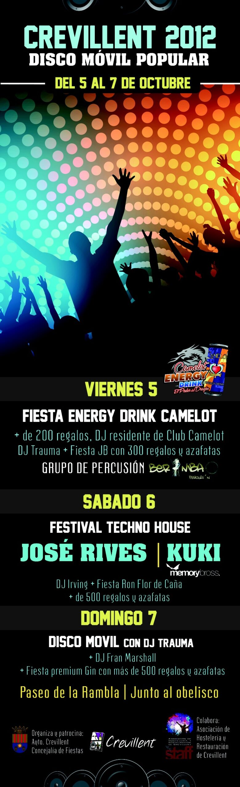 El Ayuntamiento se encargará de la infraestructura de la disco móvil, contratando para ello a una empresa local que pondrá la iluminación, sonido y las carpas, y la Asociación de Hostelería y Restauración de Crevillent se encargará de poner las barras.