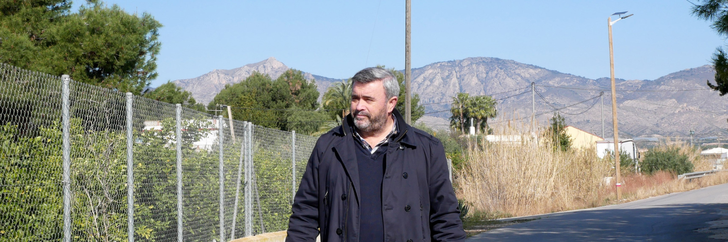 Crevillent (03/03/2023).- El alcalde de Crevillent, José Manuel Penalva, ha visitado el área del Barranco de San Cayetano, situado a los pies de la sierra. El objetivo ha sido el de comprobar el estado de la instalación de las nuevas farolas solares que desde hace un tiempo iluminan la calle principal.