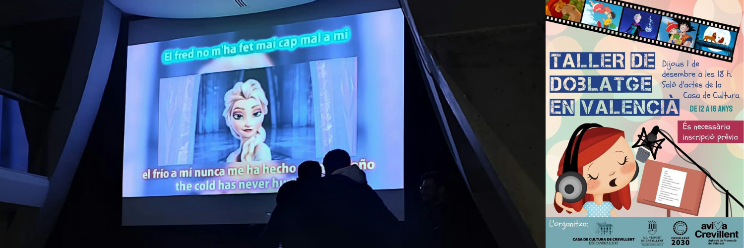 Crevillent (29/11/2022).- El pròxim dijous, 1 de desembre, a les 18.00 h al saló d’actes de la Casa Municipal de Cultura “José Candela Lledó”, tindrà lloc el “Taller de doblatge en valencià”, a càrrec d’Aviva Crevillent (l’Agència de Promoció del Valencià).