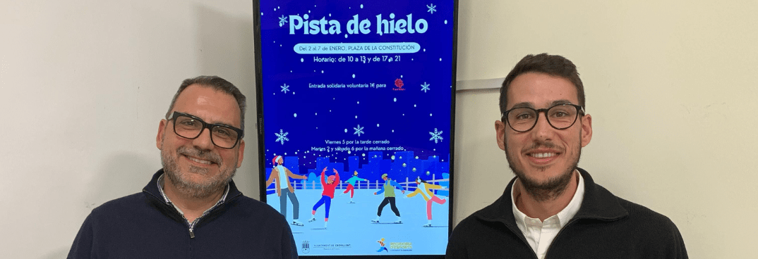 Crevillent (28/12/2023).- La Concejalía de Fiestas y la Concejalía de Deportes del Excmo. Ayuntamiento de Crevillent han presentado la pista de hielo que estará disponible del 2 al 7 de enero en la Plaza de la Constitución. El horario de la actividad será principalmente de 10 a 13 horas y de 17 a 21 horas, teniendo en cuenta que el martes 2 y el sábado 6 la actividad permanecerá cerrada por la mañana y el viernes 5 estará cerrada por la tarde.