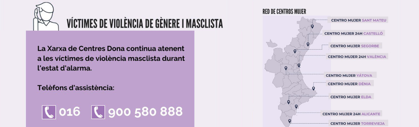 A causa de les normes de seguretat i prevenció determinades per les autoritats sanitàries, només en els casos més urgents es realitzarà una atenció de manera presencial a través de la Xarxa de Centres d’Atenció a les Dones Víctimes de Violència de Gènere.