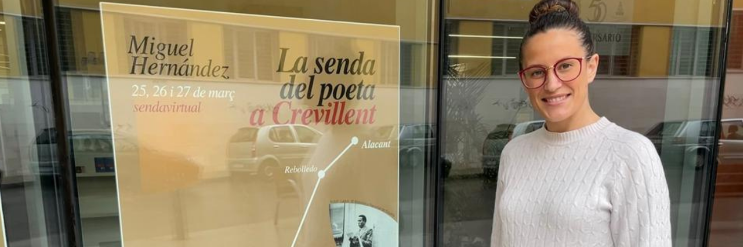 Crevillent (25/03/2022).- La Senda del Poeta 2022, que enguany se celebra de forma virtual del 25 al 27 de març a causa de la pandèmia, passarà per Crevillent de la mà del Centre Jove, que exposarà uns panells informatius d’un metre i mig d’alçada que mostraran la biografia de Miguel Hernández i tres dels seus poemes més cèlebres: “Viento del pueblo”, “Aceituneros” i “Nanas de la cebolla”, acompanyats de dissenys amb els versos més emblemàtics dels poemes.