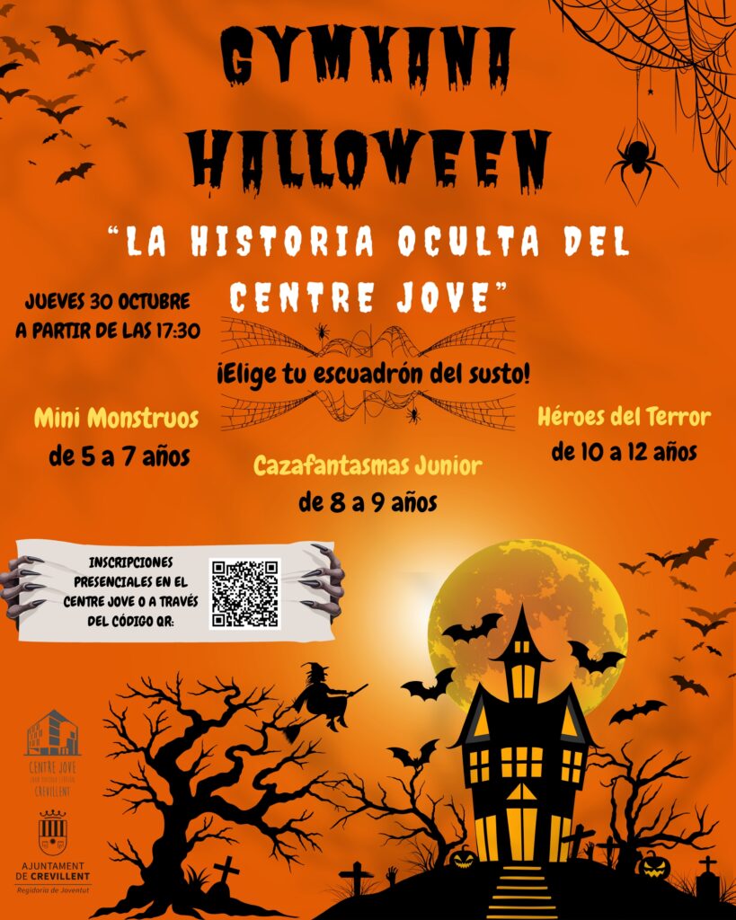 • També el dijous 30 d’octubre, des de les 17:30 hores, els xiquets i xiquetes gaudiran d’una «Gimcana Halloween» en el Centre Jove, on aniran disfressats i es divertiran en els tallers i resolent misteris, comptant esta activitat amb la col·laboració del Taller d’Ocupació de «Dinamització d’activitats de temps lliure, educatiu, infantil i juvenil i direcció i coordinació d’activitats de temps lliure, educatiu, infantil i juvenil»