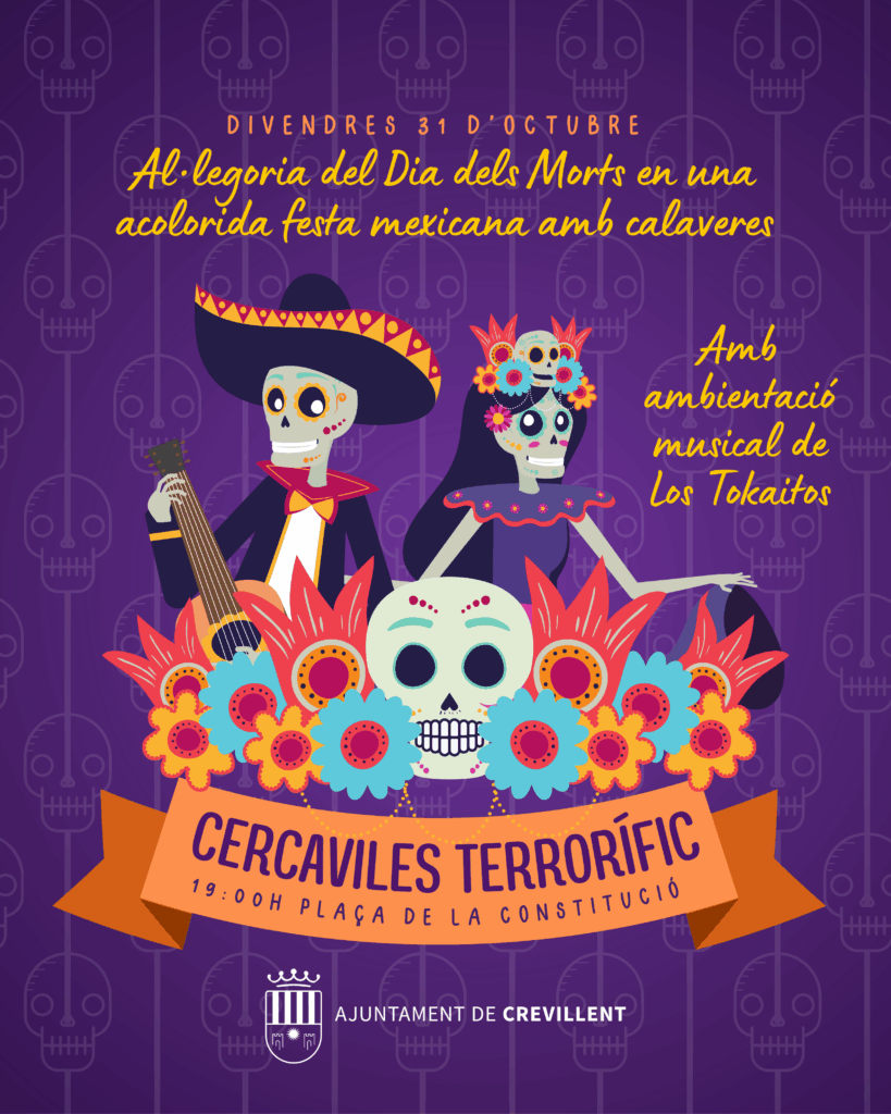 Després d’això, se celebrarà una de les activitats més destacades com és el “Cercaviles Terrorífic” serà a partir de les 19.00 hores, amb eixida des de la Plaça de la Constitució i amb final del recorregut en la Plaça de la Comunitat Valenciana. Este cercaviles comptarà amb l’ambientació musical de «Los Tokaitos», així com un espectacle que serà una al·legoria del Dia dels Morts, a càrrec de Baluarte, amb protagonisme de calaveres i presentant com a argument que “en el Dia dels Morts, Catrina renaix per a convocar a les calaques i celebrar la seua particular festa, dansaran i faran dansar a tot el públic en esta acolorida festa mexicana coneguda internacionalment”, segons ha apuntat l’edil Antonio Candel, qui ha afegit que “és un espectacle de teatre de carrer itinerant que combina diferents tècniques de teatre, animació, dansa i ús de pirotècnia, on part dels actors van en xanques per a donar la màxima visibilitat i espectacularitat al xou”. Al final del cercaviles, Els *Tokaitos continuaran amenitzant la jornada.