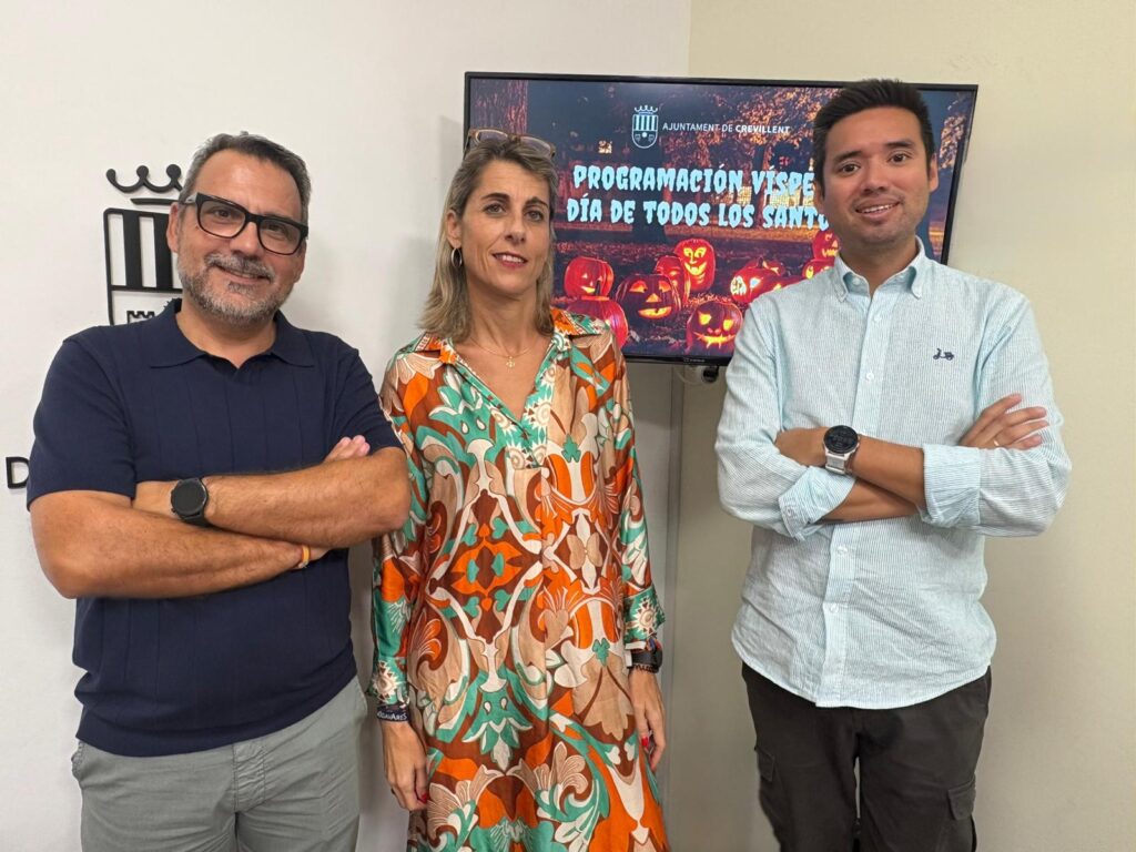 Crevillent (24/10/2025).- L’Ajuntament de Crevillent ha presentat este divendres la seua programació emmarcada en la vespra del Dia de Tots els Sants. L’alcaldessa Lourdes Aznar Miralles, juntament amb el regidor de Joventut i Oci, Pedro García Magro, i de l’edil de Festes, Antonio Candel Rives, han detallat la programació que se celebrarà els pròxims dies dijous 30 i divendres 31 d’octubre i que comprén un passatge del terror, cercaviles, gimcana i projeccions de pel·lícules de por, entre altres activitats infantils.