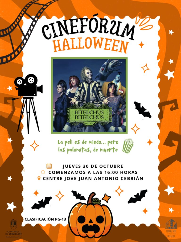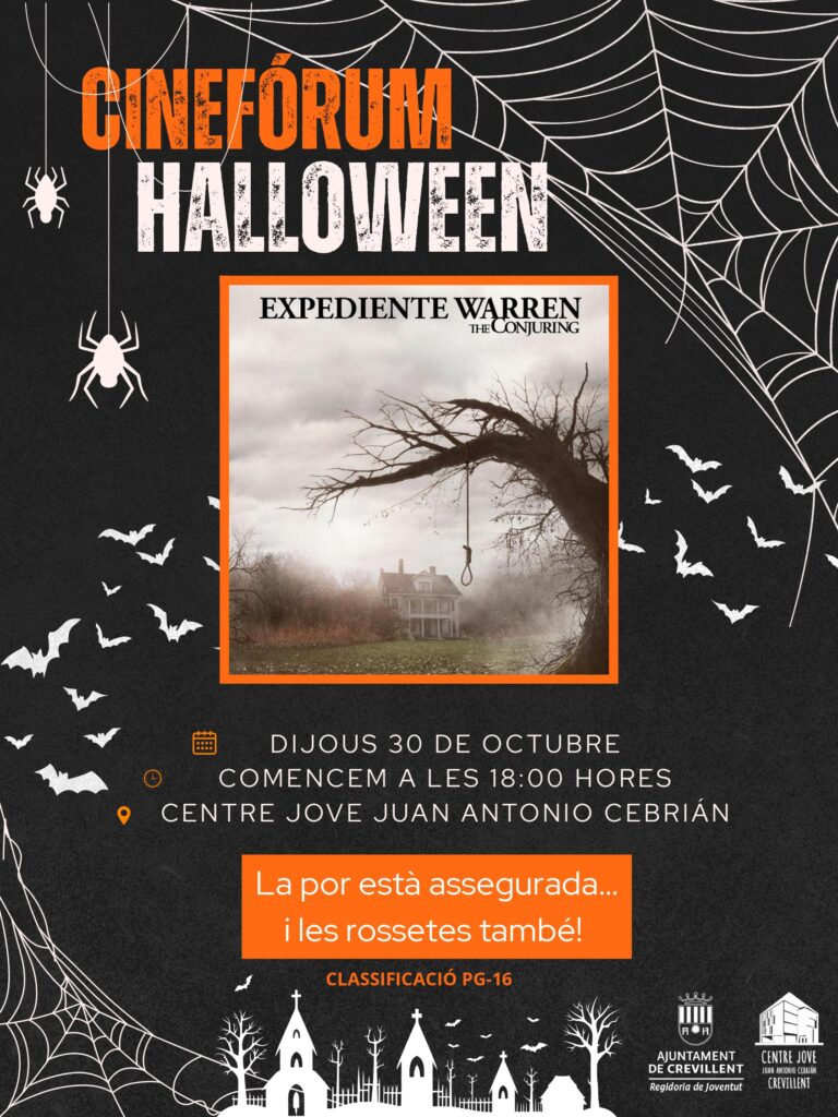 • Com a prèvia a la vespra del Dia de Tots els Sants hi haurà dos projeccions de pel·lícules el dijous 30 d’octubre en el Centre Jove a partir de les 16:00 hores amb la pel·ícula «Bitelchús» i a les 18:00 hores el film «Expediente Warren: The Conjuring»