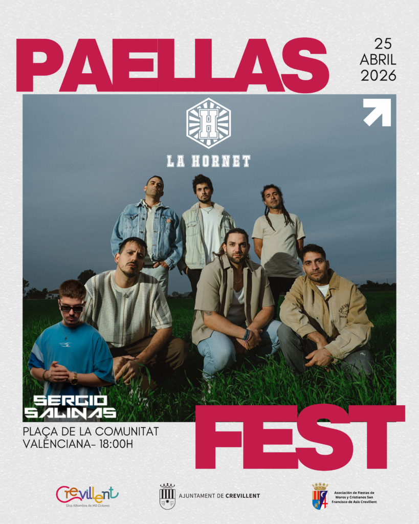 Crevillent (20/04/2026).- El concejal de Fiestas, Antonio Candel Rives, ha presentado este lunes el evento “Paellas Fest” que se celebrará este próximo sábado 25 de abril en la Plaza de la Comunidad Valenciana y que contará con la sesión de Sergio Salinas Dj, así como la actuación del grupo “La Hornet”, compuesto por distintos integrantes de la vecina comarca de la Vega Baja y que versionará grandes éxitos del pop conocidos por todos, tal y como ya hicieron en la Barraca Municipal del 2025 en el marco de las fiestas patronales y de Moros y Cristianos.